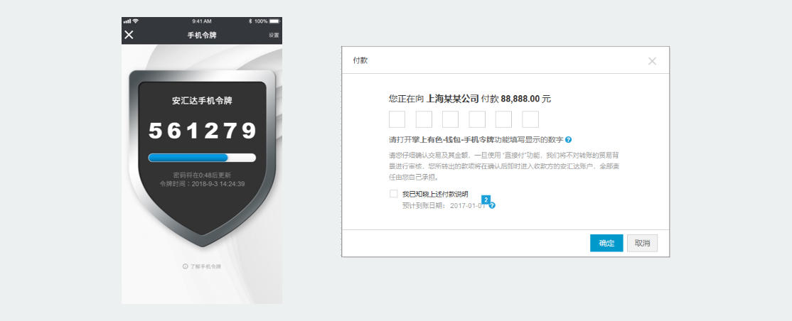 付款时在弹出对话框中输入手机令牌的令牌数字